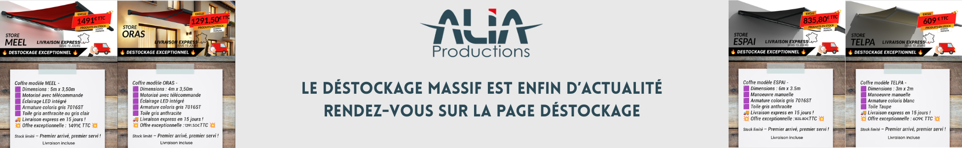 La boutique en ligne Alia Productions propose une large sélection de solutions personnalisables pour vos espaces extérieurs, avec un tarif direct fabricant, sans intermédiaires, pour un excellent rapport qualité-prix :