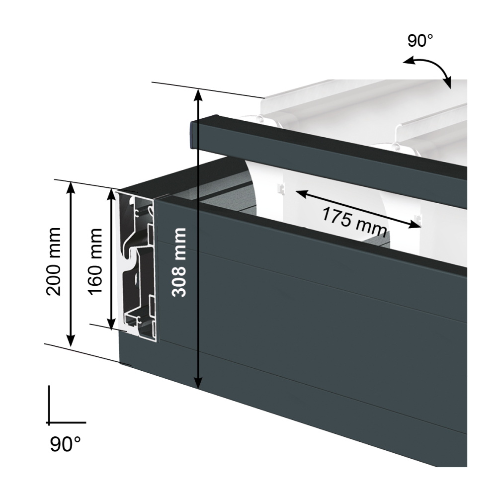 • Coffre haut ou mural: 160mm