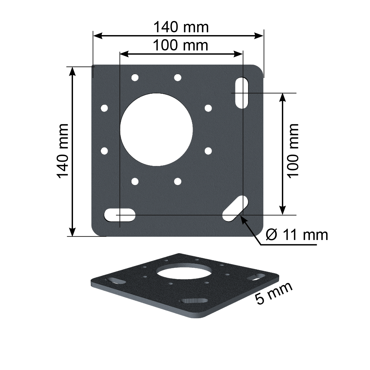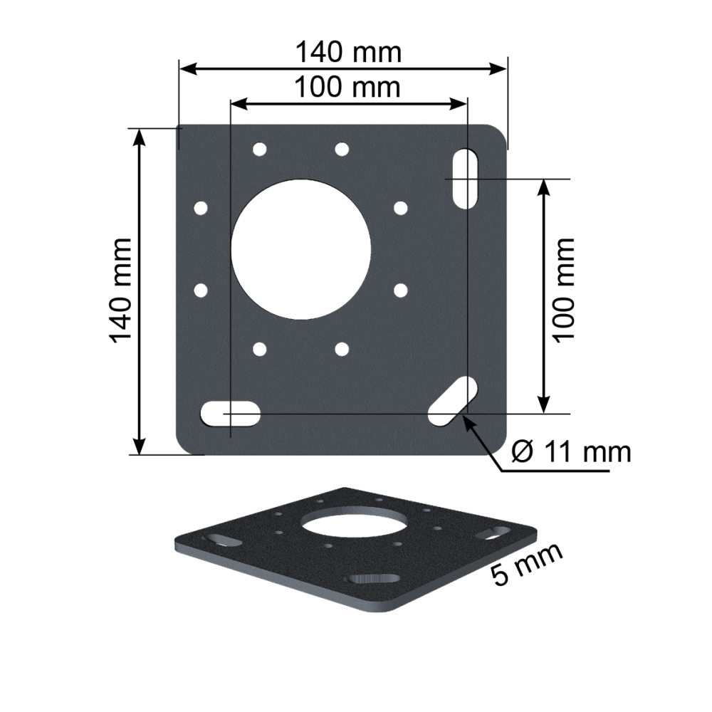 • Platine de fixation au sol: 140x140mm