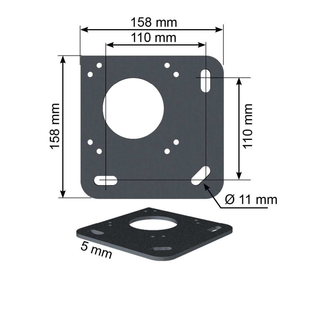 - Platine de fixation au sol : 158x158mm