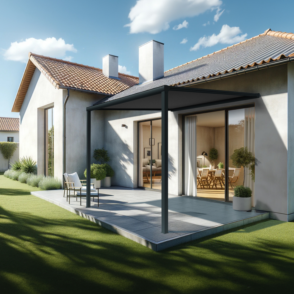 La pergola toile en pente avec toile tendue par des ressorts au sein de la barre de charge.