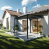 La pergola toile en pente avec toile tendue par des ressorts au sein de la barre de charge.