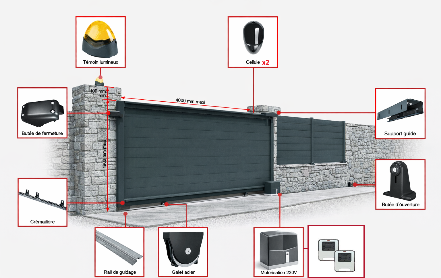 Largeur totale du portail = Largeur entre piliers + 600 mm