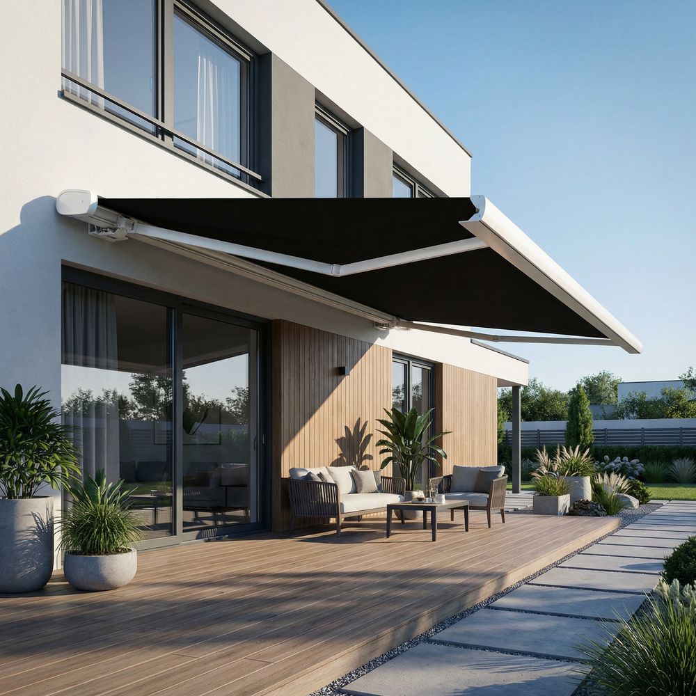 Découvrez les caractéristiques techniques du store banne coffre MEEL, qui allie ombrage et protection de la toile grâce au coffre intégral :