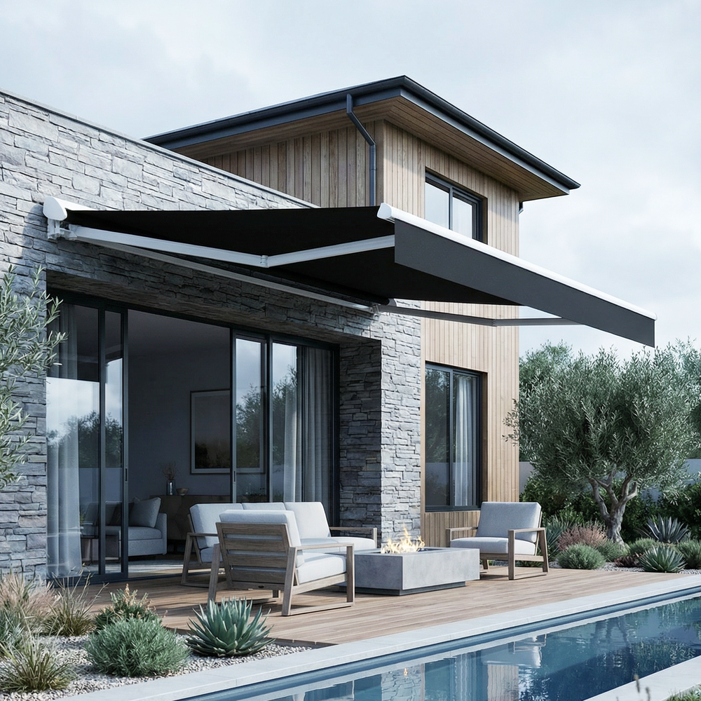 Avec le store banne semi-coffre SARARI, équipez votre terrasse avec un système d'ombrage efficace et robuste. Découvrez ses spécificités :