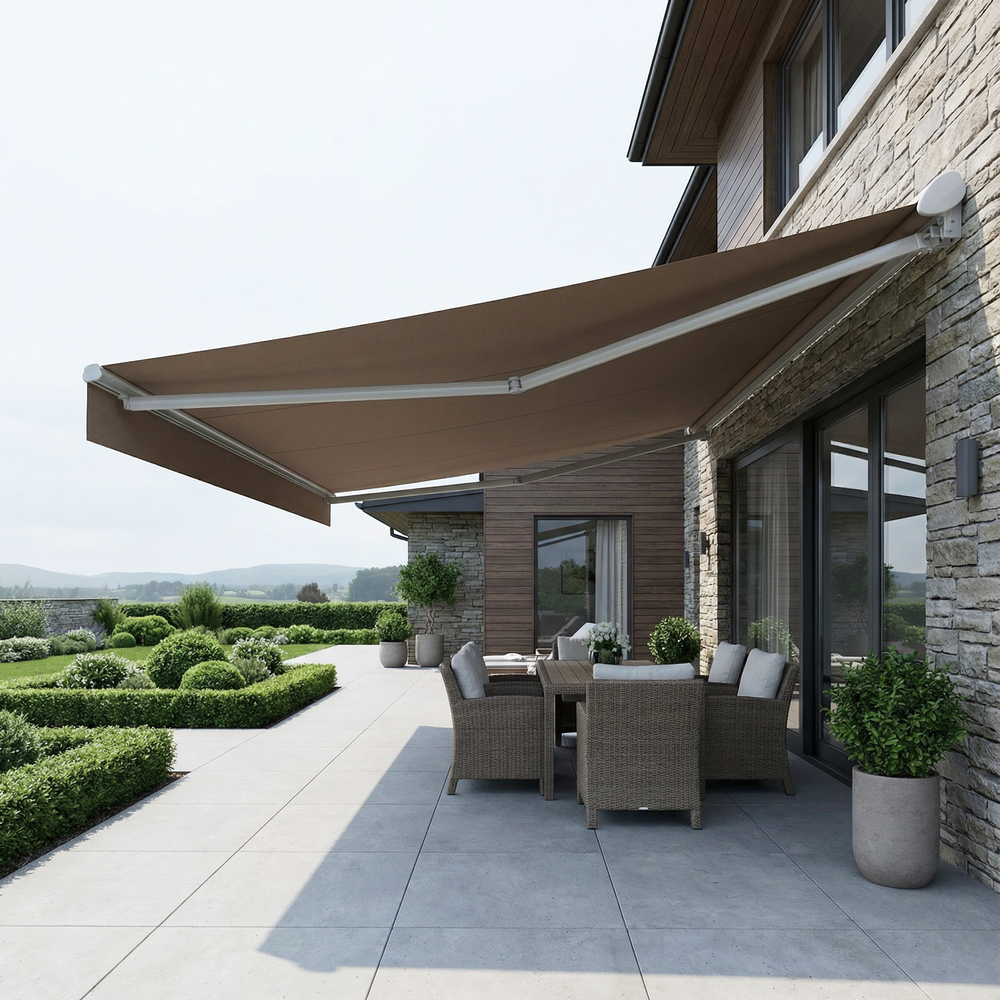 Avec le store banne semi-coffre SARARI, équipez votre terrasse avec un système d'ombrage efficace et robuste. Découvrez ses spécificités :